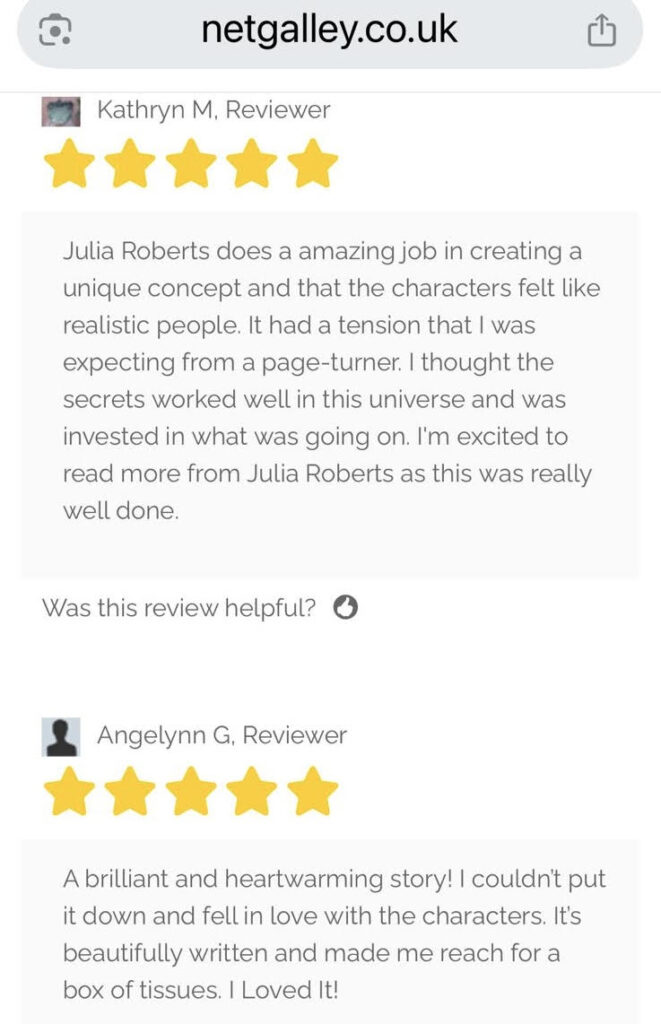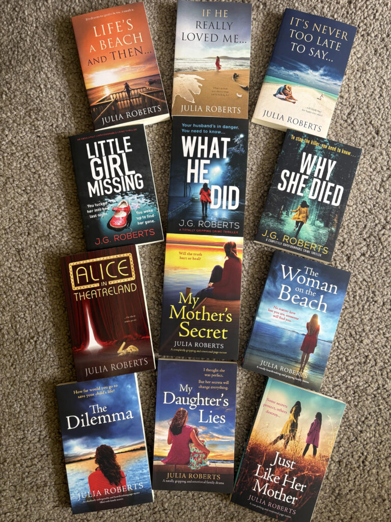 One thing I wasn’t able to do on my birthday due to the date clash was go to the charity lunch in aid of Medical Detection Dogs organised by my friend and colleague from QVC, Debbie Flint. Although I couldn’t go, I was able to offer her a raffle prize of signed copies of the nine books I’ve written as Julia Roberts, including the latest one, Just Like Her Mother which is continuing to sell well. She’s also still getting some lovely reviews both on NetGalley and Amazon. Chris spotted the two below on my birthday morning which really brought a smile to my face.