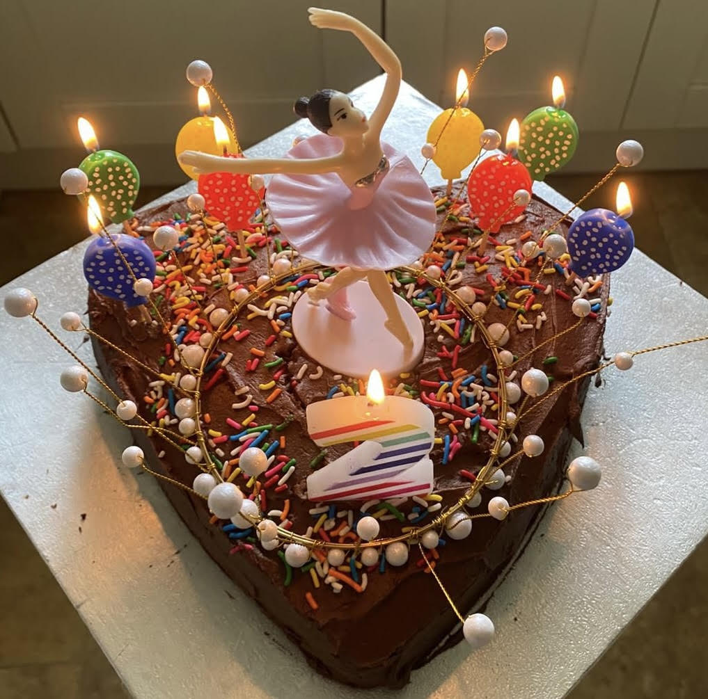 I made India’s birthday cake, the traditional chocolate heart and decorated it with a ballerina. Not exactly ‘GBBO’ standard but it was pretty tasty, although India preferred the little cupcakes I’d also made. She already goes to baby ballet classes and absolutely loves it. It must be in her genes as I was a professional dancer, and my late mum taught ballet into her early nineties. She also loves singing nursery rhymes and has a great sense of rhythm which was part of the reason Chris and I decided to buy her a mini drum kit.